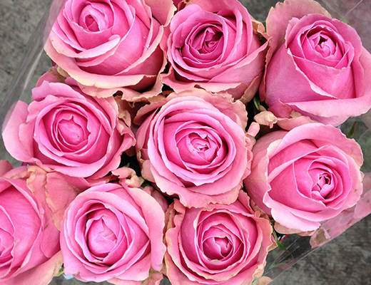 Wham Roses are pink & usually available all year round. 60cm stem lengths this wholesale cut flower is wholesaled in 20 stem wraps.